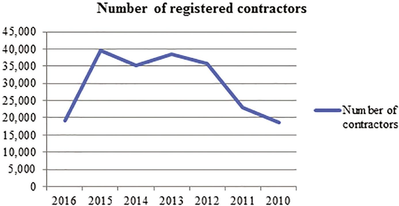Graph showing the number of registered contractors.