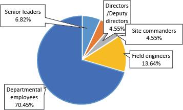 Among the 132 respondents, there were 9 senior leaders of construction enterprises (6.8%); 6 directors/deputy directors of construction investment projects (4.5%); 6 site commanders (4.5%); 18 field engineers (13.6%); and 93 departmental employees (70.5%).