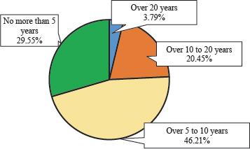 The survey results of the first four questions showed that the survey participants were all people working in the field of construction. The majority of those surveyed have >5 years of experience, and they mainly come from small- and medium-sized enterprises.