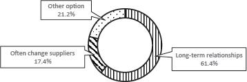 These partnerships are long-term efforts in which partners know each other’s capabilities and needs and actively seek to develop new or improved practices. Studies of relationships between chain members confirm that this is a long-term ‘partnership’ (Xue et al. 2007; Cox 2009; King and Pitt 2009; Benton and McHenry 2010; Meng 2010; Othman and Abd Rahman 2010; Samarasinghe 2014; Hesami and Navab 2015).