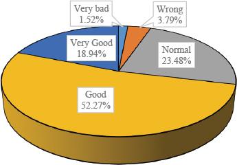 | Percentage (%) | 1.52 | 3.79 | 23.48 | 52.27 | 18.94 | 100 |