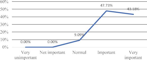 The answers are all classified into five levels, corresponding to (1) Very unimportant, (2) Not important; (3) Normal; (4) Important and (5) Very important. The results are shown in Figure 8: