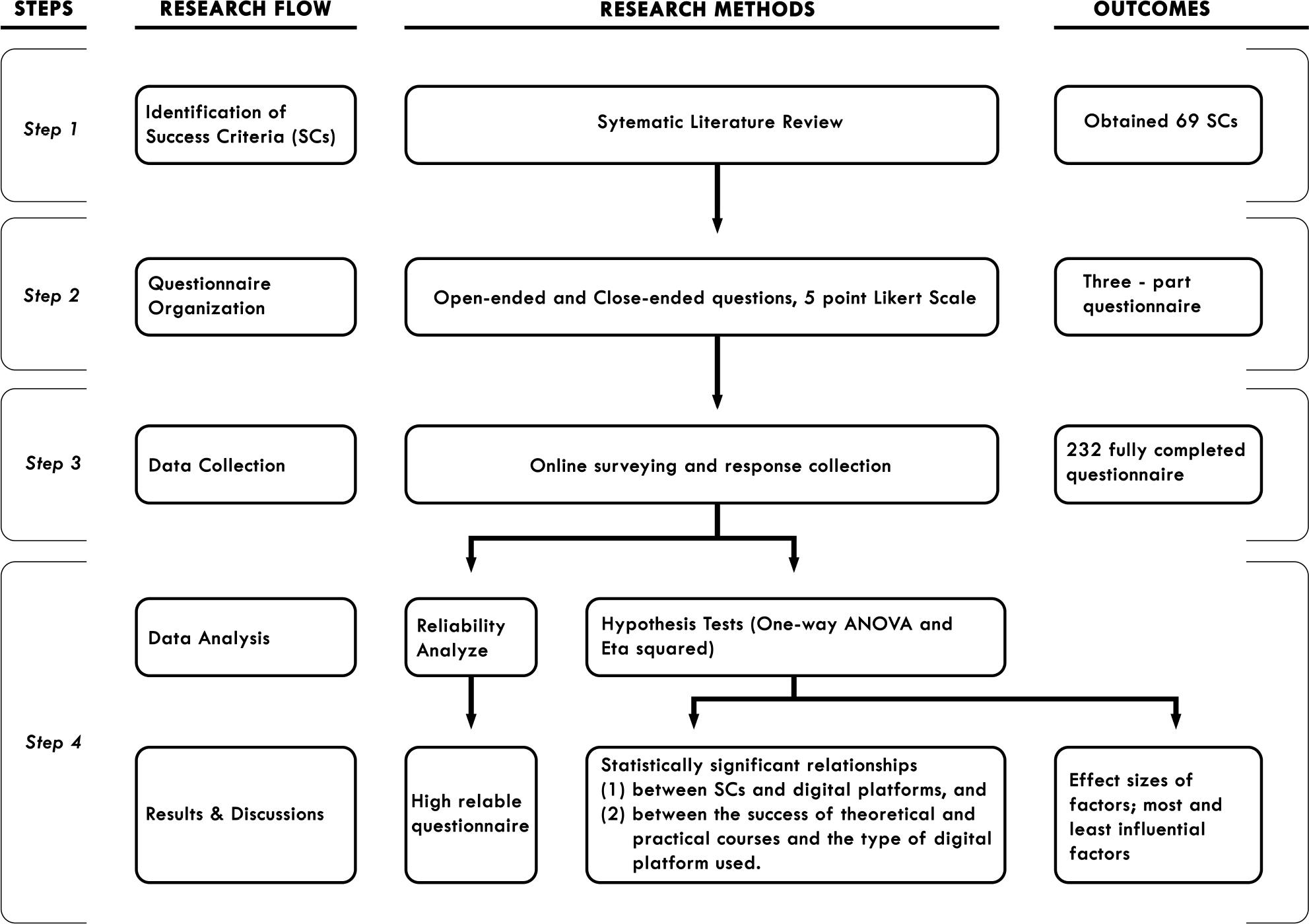 Previous research in this domain has mainly concentrated on architecture students’ satisfaction with OAE, tackling transition challenges, proposing guidelines, investigating the role of virtual reality (VR) in education and identifying obstacles to OAE adoption (Alkhalil et al. 2021; Al Maani et al. 2021; Alnusairat et al. 2021; Asadpour 2021; Ceylan et al. 2021a; Dennis 2021; Elrawy and Abouelmagd 2021; Koh and Wong 2021; Komarzyńska-świeściak et al. 2021; Leon et al. 2021; Peimani and Kamalipour 2021a; Wu et al. 2021; Bakir and Alsaadani 2022; Tandon et al. 2022; Xi and Cong 2022; Güler 2023). However, these studies have overlooked critical success factors which impede the development of sustainable strategies for OAE. Assessing the appropriateness of digital platforms for OAE in architecture schools is crucial. This study aims to identify success criteria (SCs), compare digital platforms across various variables and provide recommendations to enhance OAE’s and AE’s sustainability.