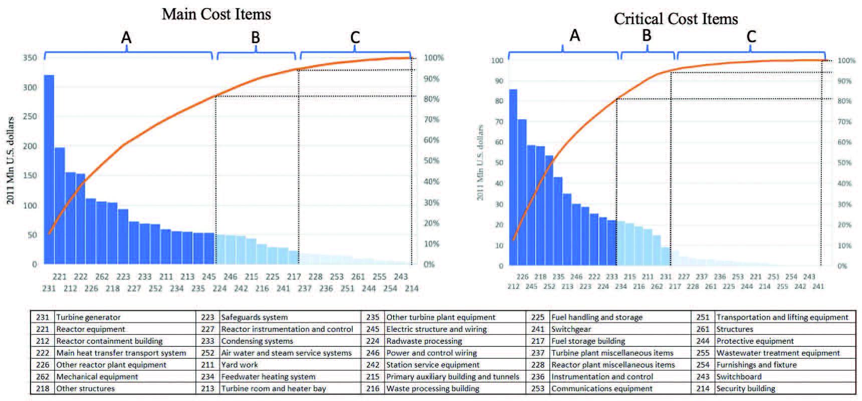 | Plant design (*) | Plant simplification rate (progressive construction/operation of multiple modules); active and passive safety; multiple units at single site. | Baseline cost |
