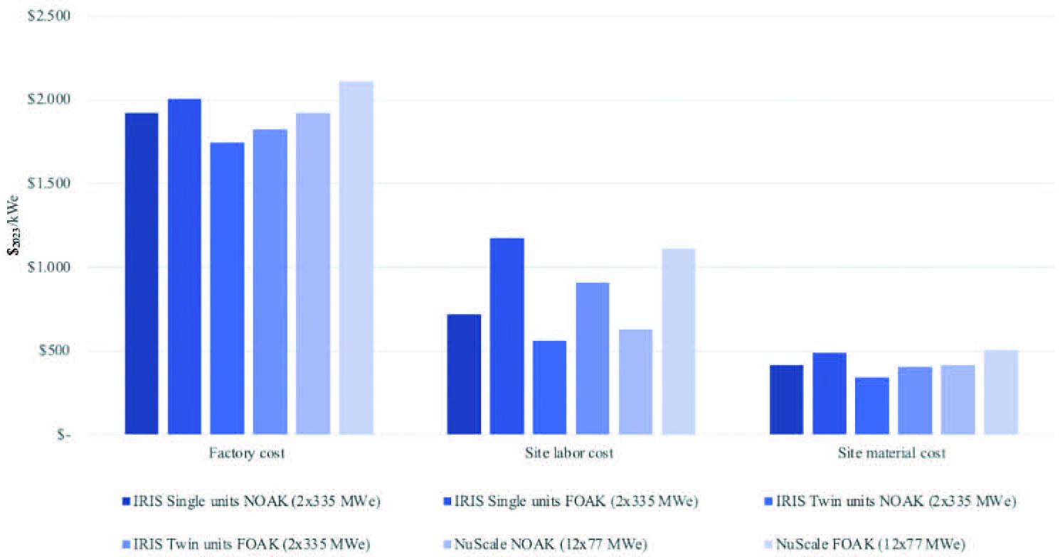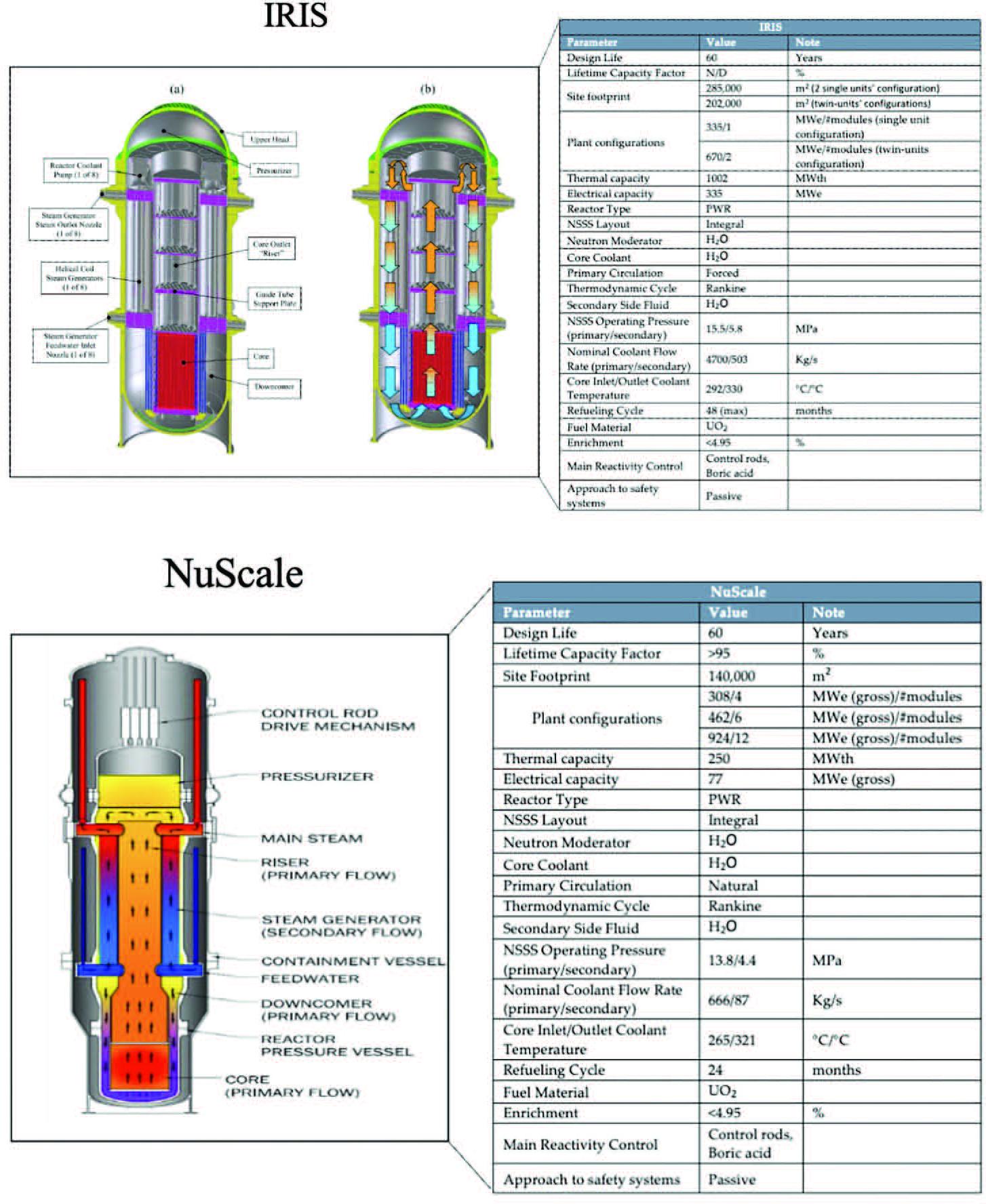 | IRIS single | IRIS twin | NuScale | PWR12 | IRIS single | IRIS twin | NuScale | ||