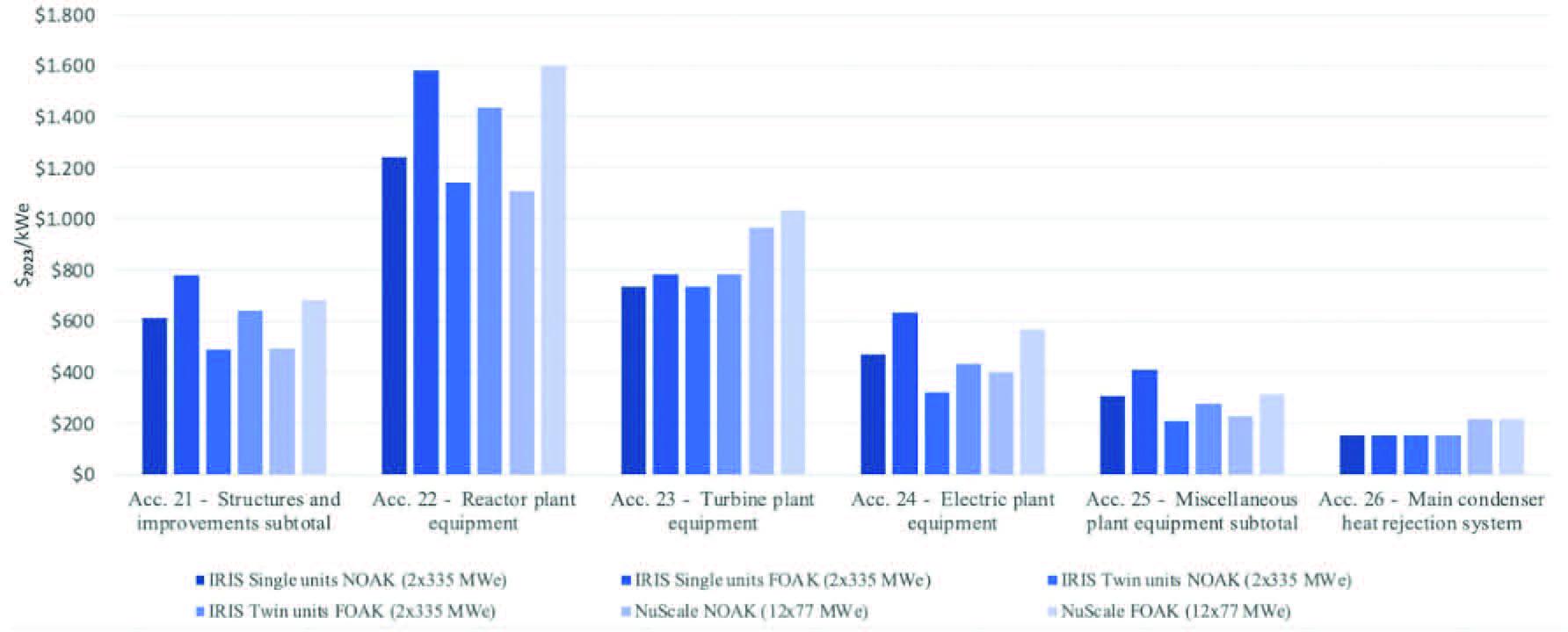 Benchmarking comparison of IRIS NOAK (2 × 335 MWe) with the two AP1000s (2 × 1078 MWe)_