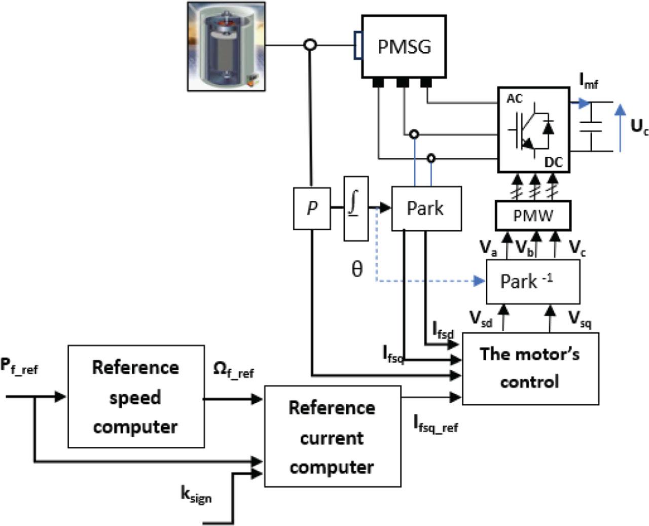 | Reference Younsi et al. (2023) | Grid-connected wind/flywheel | This control system includes primary and secondary controllers. The primary stage uses a droop controller to optimise power flow in the resistive network, while the secondary stage employs an improved method to manage voltage and frequency fluctuations during signal disturbances. |