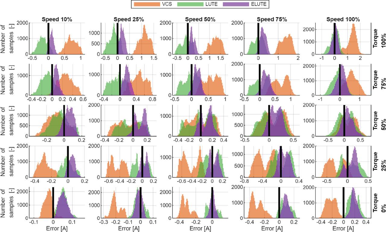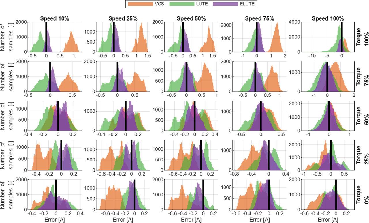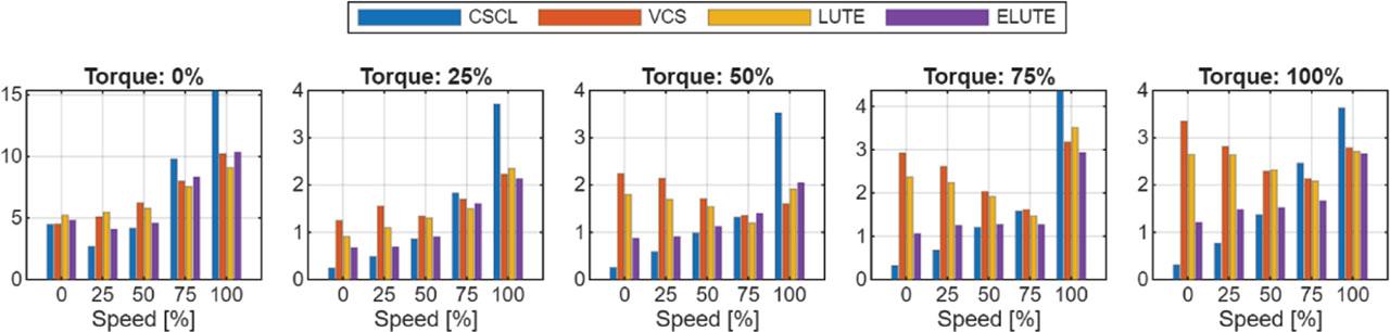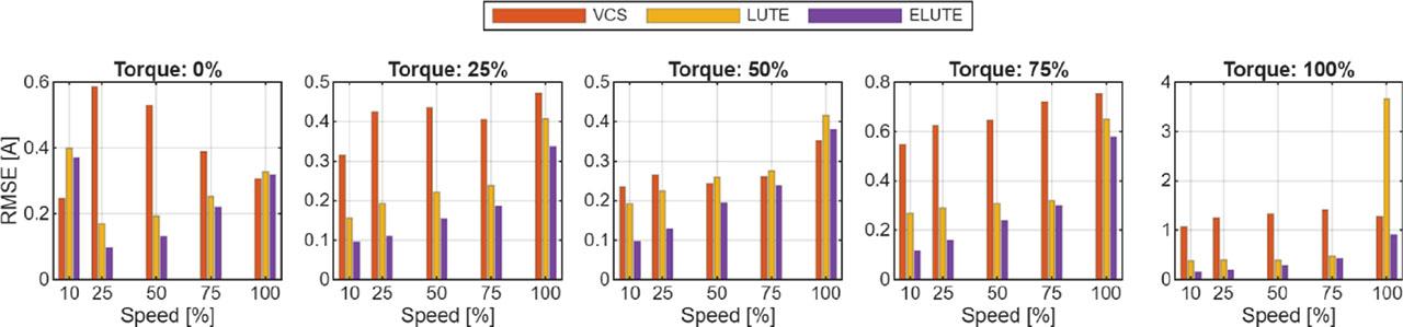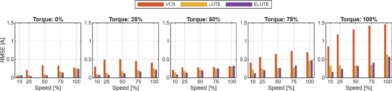 Statistics of RMSE for estimation methods calculated from all operating points of the drive_