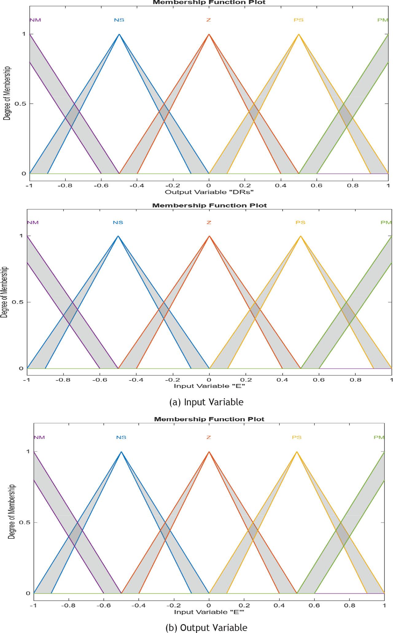 The Mamdani-type inference mechanism is adopted due to its simplicity and interpretability. The type-2 fuzzy rule takes the following form: negative medium (NM), negative small (NS), zero (Z), positive small (PS) and positive medium (PM).
