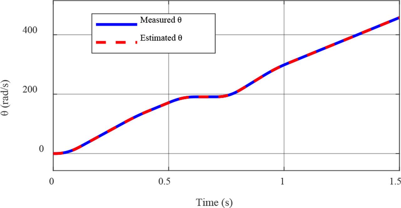 As shown in Figure 9, the estimated and measured angular positions are in acceptable agreement between the two signals. The curves follow the same model, showing that the estimation model is well synchronised with the actual motor.