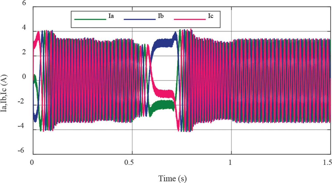 An application of a load torque of 1 N.m takes place in both the healthy and faulty states of the PMSM.