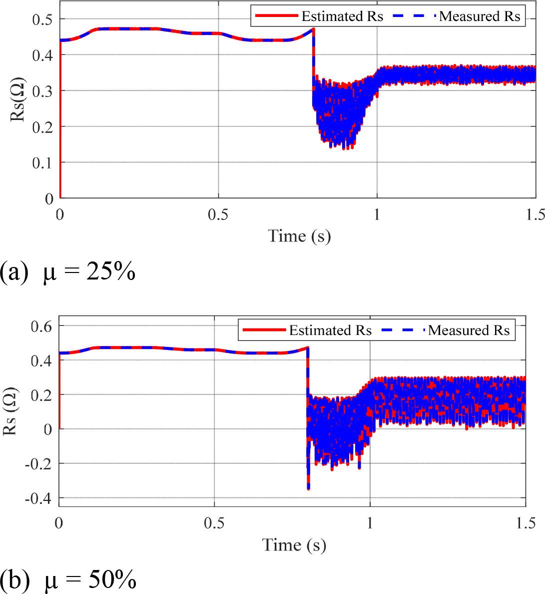 Figure 12 illustrates the estimated and measured stator resistance, respectively, for µ = 25% and µ = 50%.