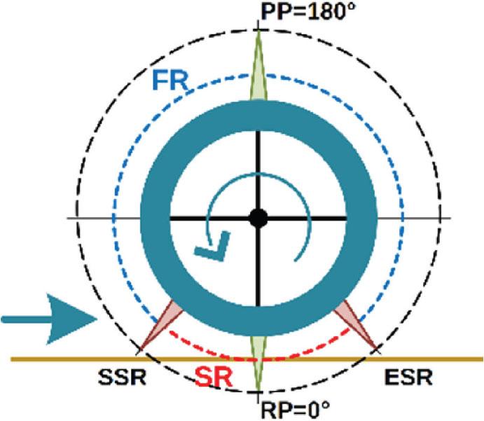 Important areas of rotary shears trajectory. Source: Siemens AG (2025). ESR, end of the synchronous range; FR, formatting range; PP, parking position; RP, reference point; SR, synchronous range; SSR, start of the synchronous range.