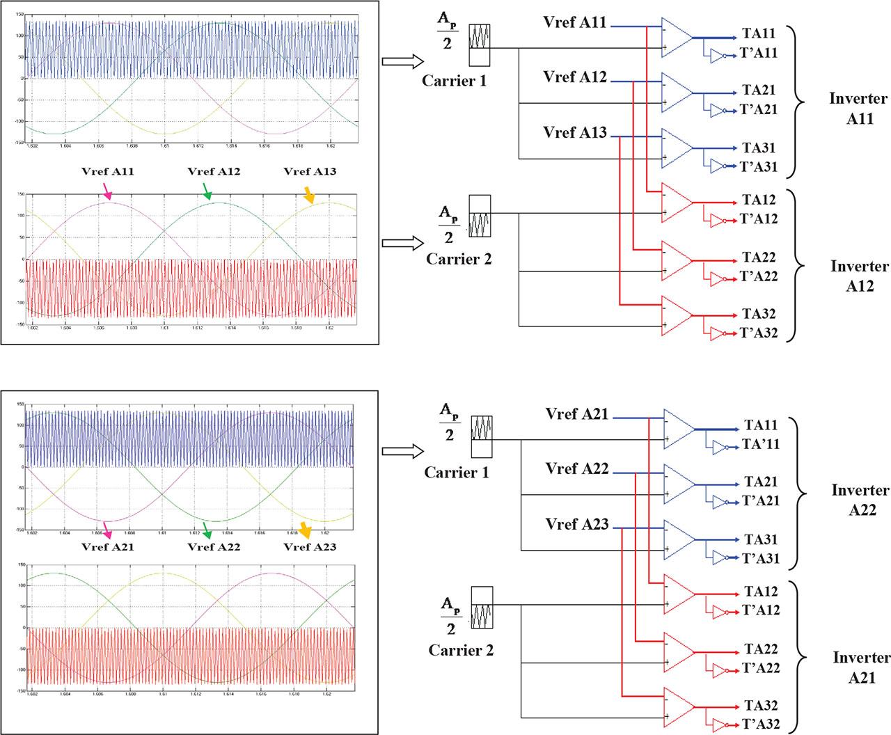 Principle of the phase-disposition PWM for two cascaded inverters. PWM, pulse width modulation.