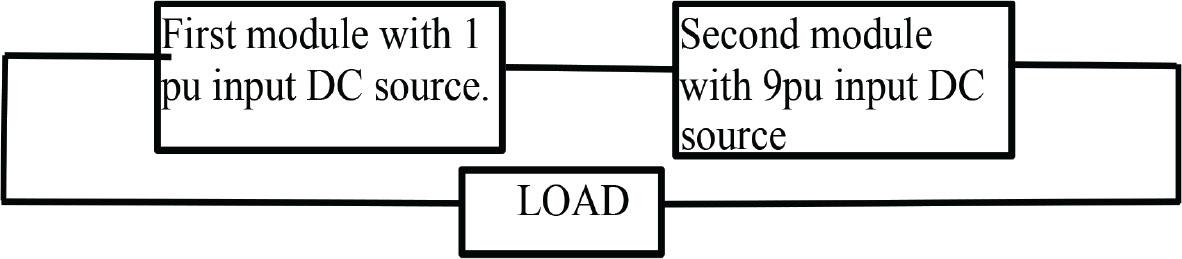 The proposed topology can be extended in a suitable way for higher levels. The best extension is shown in Figure 12, which consists of two modules and connected back-to-back. The proposed topology is connected with another similar topology with back-to-back connection. If the first module’s input DC value is 1 pu, then the second module’s value would be set at 9 pu.