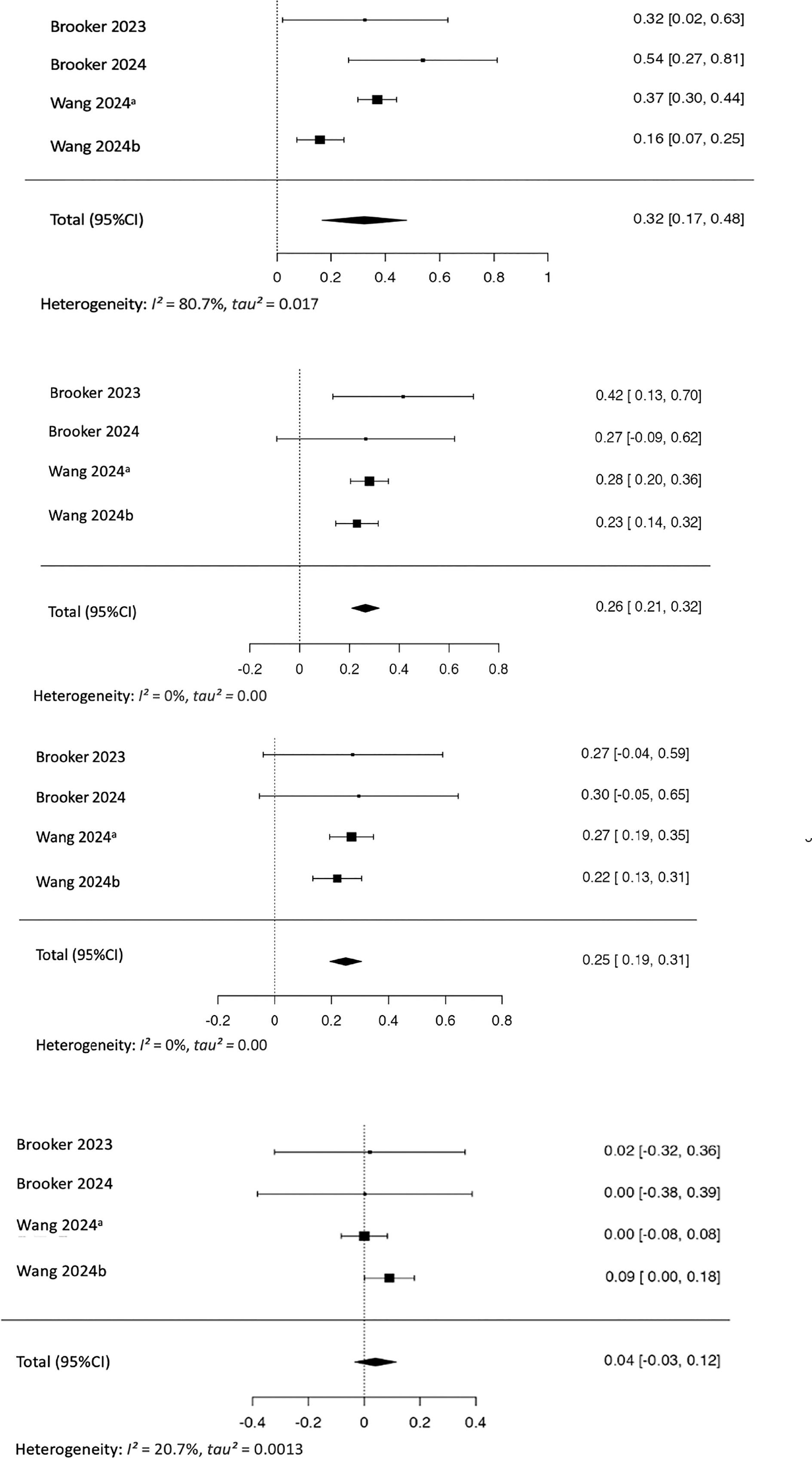 | Brooker 2024 (14) | ** | * | ** | * | ** | * | 9 | |