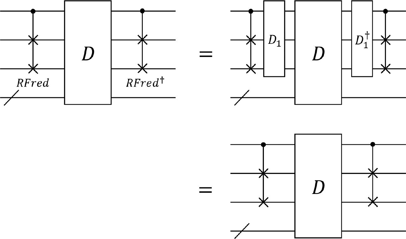 ![Decomposition of Fredkin gate and relative-phase Fredkin gate. (a) Construction of a Fredkin gate using a Toffoli gate and two CNOT gates reported in Ref. [24]. (b) Construction of a relative-phase Fredkin gate using a relative-phase Toffoli gate and two CNOT gates.](https://sciendo-parsed.s3.eu-central-1.amazonaws.com/68a877c8afc50a4de0964e8a/j_qic-2025-0016_fig_004.jpg?X-Amz-Algorithm=AWS4-HMAC-SHA256&X-Amz-Content-Sha256=UNSIGNED-PAYLOAD&X-Amz-Credential=ASIA6AP2G7AKNWGVUYYO%2F20260130%2Feu-central-1%2Fs3%2Faws4_request&X-Amz-Date=20260130T151000Z&X-Amz-Expires=3600&X-Amz-Security-Token=IQoJb3JpZ2luX2VjENb%2F%2F%2F%2F%2F%2F%2F%2F%2F%2FwEaDGV1LWNlbnRyYWwtMSJHMEUCIQD0X1DLpmJnqlMJ7snG0Ko12uddMzdO3h0bNKsKIwqYtgIgYuwvQMUKbod1JXbgFxnZOb4PC4HNdaljZ36HeeRQYVwqxAUIn%2F%2F%2F%2F%2F%2F%2F%2F%2F%2F%2FARACGgw5NjMxMzQyODk5NDAiDDK6ASK3hGOFLE8D8yqYBfYUczh%2FTIdg%2FKcQw08wu3zRet0MFH0be%2FfIsn0N0Ps5ynwZO%2Bcw%2FWYCLic6qOJE2kZ%2BVJWUHbQNqEbhF8CpPK43ERtjzuqVALclCKgbKWF1hbV3w%2BLdc%2Bqbwu%2BLTnTkcedc10Y9m%2FU6fjKM1WXCJxZABhcTdX4rhmql5A7usRKZNOXGp3DUEpnp3TNEaYzhc%2FZZYUvn1HNhjtB8bKFHTfs4ETURLtU2AIza4T3lNXcOY6NAL%2F8VkzwfgADA6GiQaBV0RomsfYy3VPhFpG8YdpRHJAPZMHs%2F0xkOMTGb%2BvOHIEm%2Bz8CBKb6l93PZ2MFg%2BqANAa%2BkL1vj%2BsRhvlP0%2FAGhpiWiNBp9W31Zev6L%2FZZRifBvq2sun7vNVyQMbR%2FrnMhXF70tPWyd35LcluGenHkXSCzv%2FHpGZl9VNSDFySwF%2B6Z%2BAl%2B2snJeyTHyPJIOO0QnoPKmc4qLJ2O2PLXP9N7irSBuIxRHSPEgrknxkkW4tuQXhZiH5YzDfoArF8Nfqno%2B3w3fVyrwspLJpVERBeXkEcyHfeWQW3l9fBqEr0tePHEWWzll4lGsK5FtBXbzECPJ5NJyW7bTQB63MWZNCvRlbJDGsGwz5nzNp3YPotz38icKBZSDQiYqtYH%2BjzvFeZPZGfP3I9Q%2F6nnViNrroa6KAIcU9h91gwDr%2BU85bMts3xHvyMeMdaVWo9VTyewj6%2B6ZSyIiIGiDugMLxYasFoEW0AewD9CE2p1XuERahe1qwSJk6pDEgbpRkP40rRaLdg8yY%2BG76t%2FZud5Wniml0pJhWvl%2Fi2VQrKoqkHXItXX8ZvohzFWnlMIVKnSemiwMkR2ArJL0bNDy6pW6iFDAxGVYKGtasByA9%2BZaD6OttymeTy%2BgUQs9mocw7u7yywY6sQHwwIURvITATCs3g9jbo4ov7P2Ulp3pe%2BjVINWvQbH1NtmUMsdLdS7lhXUoYqDdjKqHg7zOPBMVz3%2BVzvhKd04dsQOhgaRa4UIK79cUbCc1lVp0L%2F56eBVrPmRBoQ8M7FJsXCYH8XiGxOQuOG6I%2FlJzWu%2BwWc5odlhvTJ0a%2FPlLnwPYlhC1KzvtHEc84QfB%2F7wzhCXrxt5eiUUxlQe2WnJ4eSG6yMUFBdXw2K6QYX13ML0%3D&X-Amz-Signature=0fced708b072310c0fd7c8dcd5140fbd311a7d715733cdd683c5bbad70a9d270&X-Amz-SignedHeaders=host&x-amz-checksum-mode=ENABLED&x-id=GetObject)