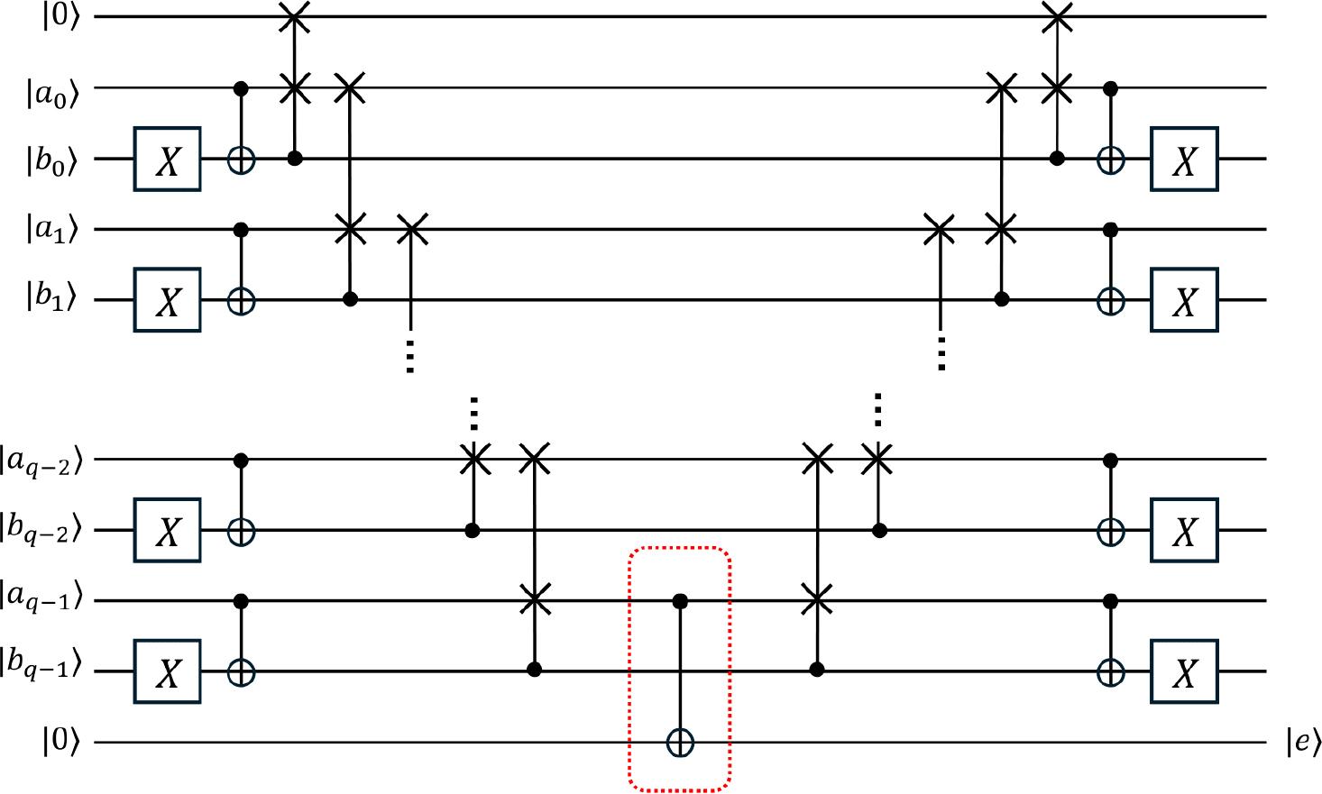 ![Circuit diagram of the q-qubit comparator presented in Ref. [37], which compares the quantum states |a〉 = |aq – 1aq – 2 … a0〉 and |b〉 = |bq – 1bq – 2 … b0〉. The output qubit |e〉 indicates the comparison result: if |e〉 = 0, then a ≤ b; if |e〉 = 1, then a > b. When decomposed into the Clifford+T gate set using the Fredkin gate decomposition adopted in Ref. [4], the circuit requires a T-count of 14q.](https://sciendo-parsed.s3.eu-central-1.amazonaws.com/68a877c8afc50a4de0964e8a/j_qic-2025-0016_fig_012.jpg?X-Amz-Algorithm=AWS4-HMAC-SHA256&X-Amz-Content-Sha256=UNSIGNED-PAYLOAD&X-Amz-Credential=ASIA6AP2G7AKNWGVUYYO%2F20260130%2Feu-central-1%2Fs3%2Faws4_request&X-Amz-Date=20260130T151000Z&X-Amz-Expires=3600&X-Amz-Security-Token=IQoJb3JpZ2luX2VjENb%2F%2F%2F%2F%2F%2F%2F%2F%2F%2FwEaDGV1LWNlbnRyYWwtMSJHMEUCIQD0X1DLpmJnqlMJ7snG0Ko12uddMzdO3h0bNKsKIwqYtgIgYuwvQMUKbod1JXbgFxnZOb4PC4HNdaljZ36HeeRQYVwqxAUIn%2F%2F%2F%2F%2F%2F%2F%2F%2F%2F%2FARACGgw5NjMxMzQyODk5NDAiDDK6ASK3hGOFLE8D8yqYBfYUczh%2FTIdg%2FKcQw08wu3zRet0MFH0be%2FfIsn0N0Ps5ynwZO%2Bcw%2FWYCLic6qOJE2kZ%2BVJWUHbQNqEbhF8CpPK43ERtjzuqVALclCKgbKWF1hbV3w%2BLdc%2Bqbwu%2BLTnTkcedc10Y9m%2FU6fjKM1WXCJxZABhcTdX4rhmql5A7usRKZNOXGp3DUEpnp3TNEaYzhc%2FZZYUvn1HNhjtB8bKFHTfs4ETURLtU2AIza4T3lNXcOY6NAL%2F8VkzwfgADA6GiQaBV0RomsfYy3VPhFpG8YdpRHJAPZMHs%2F0xkOMTGb%2BvOHIEm%2Bz8CBKb6l93PZ2MFg%2BqANAa%2BkL1vj%2BsRhvlP0%2FAGhpiWiNBp9W31Zev6L%2FZZRifBvq2sun7vNVyQMbR%2FrnMhXF70tPWyd35LcluGenHkXSCzv%2FHpGZl9VNSDFySwF%2B6Z%2BAl%2B2snJeyTHyPJIOO0QnoPKmc4qLJ2O2PLXP9N7irSBuIxRHSPEgrknxkkW4tuQXhZiH5YzDfoArF8Nfqno%2B3w3fVyrwspLJpVERBeXkEcyHfeWQW3l9fBqEr0tePHEWWzll4lGsK5FtBXbzECPJ5NJyW7bTQB63MWZNCvRlbJDGsGwz5nzNp3YPotz38icKBZSDQiYqtYH%2BjzvFeZPZGfP3I9Q%2F6nnViNrroa6KAIcU9h91gwDr%2BU85bMts3xHvyMeMdaVWo9VTyewj6%2B6ZSyIiIGiDugMLxYasFoEW0AewD9CE2p1XuERahe1qwSJk6pDEgbpRkP40rRaLdg8yY%2BG76t%2FZud5Wniml0pJhWvl%2Fi2VQrKoqkHXItXX8ZvohzFWnlMIVKnSemiwMkR2ArJL0bNDy6pW6iFDAxGVYKGtasByA9%2BZaD6OttymeTy%2BgUQs9mocw7u7yywY6sQHwwIURvITATCs3g9jbo4ov7P2Ulp3pe%2BjVINWvQbH1NtmUMsdLdS7lhXUoYqDdjKqHg7zOPBMVz3%2BVzvhKd04dsQOhgaRa4UIK79cUbCc1lVp0L%2F56eBVrPmRBoQ8M7FJsXCYH8XiGxOQuOG6I%2FlJzWu%2BwWc5odlhvTJ0a%2FPlLnwPYlhC1KzvtHEc84QfB%2F7wzhCXrxt5eiUUxlQe2WnJ4eSG6yMUFBdXw2K6QYX13ML0%3D&X-Amz-Signature=9ea8b6e2264cfebe81da2ec0217557d3cb78e55903da4a60562ab0958442fcb2&X-Amz-SignedHeaders=host&x-amz-checksum-mode=ENABLED&x-id=GetObject)