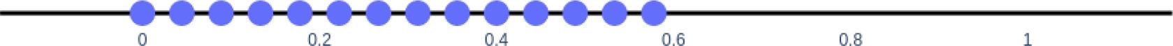 The overlap spectrum of an instance of the SK model with = 45. No gap was observed and including additional suboptimal solution merely monotonically increases the overlap until the set of overlap is dense.