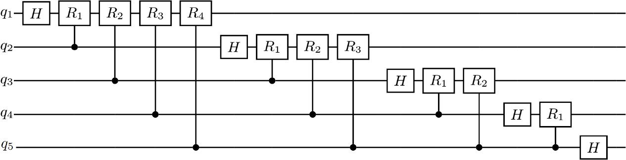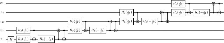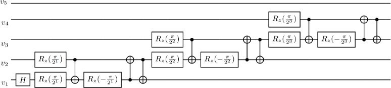 The CNOT cost of quantum circuit for the QFT algorithm for LNN architecture_ The CNOT cost of circuits produced by the algorithm from [14] is n2 + n – 4; by the algorithm from [79] is 1_5n2 – 2_5n + 1; the algorithm from this paper is 1_5n2 – 1_5n – 1_
