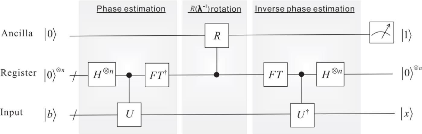 ![Schematic representation of the HHL algorithm ([16]).](https://sciendo-parsed.s3.eu-central-1.amazonaws.com/69b03f3073f0b3637a28372d/j_qic-2025-0035_fig_004.jpg?X-Amz-Algorithm=AWS4-HMAC-SHA256&X-Amz-Content-Sha256=UNSIGNED-PAYLOAD&X-Amz-Credential=ASIA6AP2G7AKHWVIK4OR%2F20260313%2Feu-central-1%2Fs3%2Faws4_request&X-Amz-Date=20260313T065145Z&X-Amz-Expires=3600&X-Amz-Security-Token=IQoJb3JpZ2luX2VjEL7%2F%2F%2F%2F%2F%2F%2F%2F%2F%2FwEaDGV1LWNlbnRyYWwtMSJIMEYCIQCmpjodvcCGbuMCOlFqerCkMsrZbsnjMscu9CMOrVrYOwIhAPHL5z41emb9UqZlvRMMiIXUVJyTQAvomRcIy4Ci%2BsrBKsYFCIf%2F%2F%2F%2F%2F%2F%2F%2F%2F%2FwEQAhoMOTYzMTM0Mjg5OTQwIgwvWVM5Y8f9dKcB0xcqmgW3o8zkc7TKIC%2FMqpnqj%2BgUa5VpAnsPxq2reHqfDqiWTph3fGHwZbiGxLZ%2Foxvi4j9rGkY94F94979YKnwhb30Em8AS1IotiAhMEFlo8feWmJkGnKDM%2FDcJCc9udpsWWHtx%2BxbRSzOxNnfOOwNOI6lBxRap69FckjQV6fH7royLVWV0oq1PuEACnhqNvQRWLciLNDXsKfBXGPpVkrxEcsUIiab7mxnF8xDEH%2BpUQGjo%2Bj59OsqakgAbq1rmYW%2FjE%2F5yZUipEDlCOJpU4zJNI4G7%2Bh2bI9JcFyfkMUs4kt8oxjKDCaUET45aSRgkyoZ1koLrzGHEs0UfVAdJmVrYyPyxyGLnR%2Fs8YEIa9iCRcEIaynDomInBMTvdUSbu5v8XgEL24FqeWtXmPYRsgAoa1iBYJOMGlXSjOs2W1PE4xAjE3CiL6nvizd52w7GjxBZnVmU3s2Z4XOJBZs8TkfARZVQ%2FAhSS5OzZhl2rAVY44gLESQfFFkrD38Eg54y8lbzO6el4M5IBoF78jH1%2Fw%2F086d07gc1tptUXkr%2Bl71jKKaRt5or3nL%2FAi83PC6g8Te9N0cI7Xu5WDS3eDSEIDOlAqaEY%2FJgaJOUA%2Bb40XcE2tTtXDY43NP%2BHueabNCVaiPHlKdrLvP3FoIy9G8BxdqrSTd27YAMfvCWC35rcVi%2BOrU%2F9KCgRn0MCBkrOJq5w3%2B2h7DQHPGlf%2BBu2YAp0E%2BT2gKs2tLdesxJh4qZL%2FxR5KsP79Sr1vC6h0EqTOpRdZQt%2FiDJuW8w9Fl3D2U54TLy5Jlzne8azK%2BxUimtw9emjyIv%2BoqFjxnRyoU92c0A%2B6eDR9NP1oHIYwpldXbMfhyHjnmaQkcTQq%2BdlZSm4QO6rmNdH3bL6sL1U0S4HGBsw4MjOzQY6sAF2WXET%2F37Yd%2BxNy%2BAtlD3IkSxvu2DaGiQ4h%2BoLr%2Br%2B02b%2FyzFa5d9JIVA08PxCq5VwjCBQ56zlNUvpExqSWojrll9x74j%2FaEYN29DYX5Erspyd3VfrR4yJu64pbyPG6pyh14Qfsf6c8jnGYl9SomrAgEh1%2Fs39KMfHJrhPZ9h3tzSZR6a0%2FPTdlcBn6XbQ5%2FUGC7BtSsaxzJXPpy2WeocVjQtZ6I0EDyn616Zpa%2FI2Og%3D%3D&X-Amz-Signature=f9b2ff570760be16572f4746bd1ee735888e8185a7e6cf4ad80594ce5e33a2b0&X-Amz-SignedHeaders=host&x-amz-checksum-mode=ENABLED&x-id=GetObject)