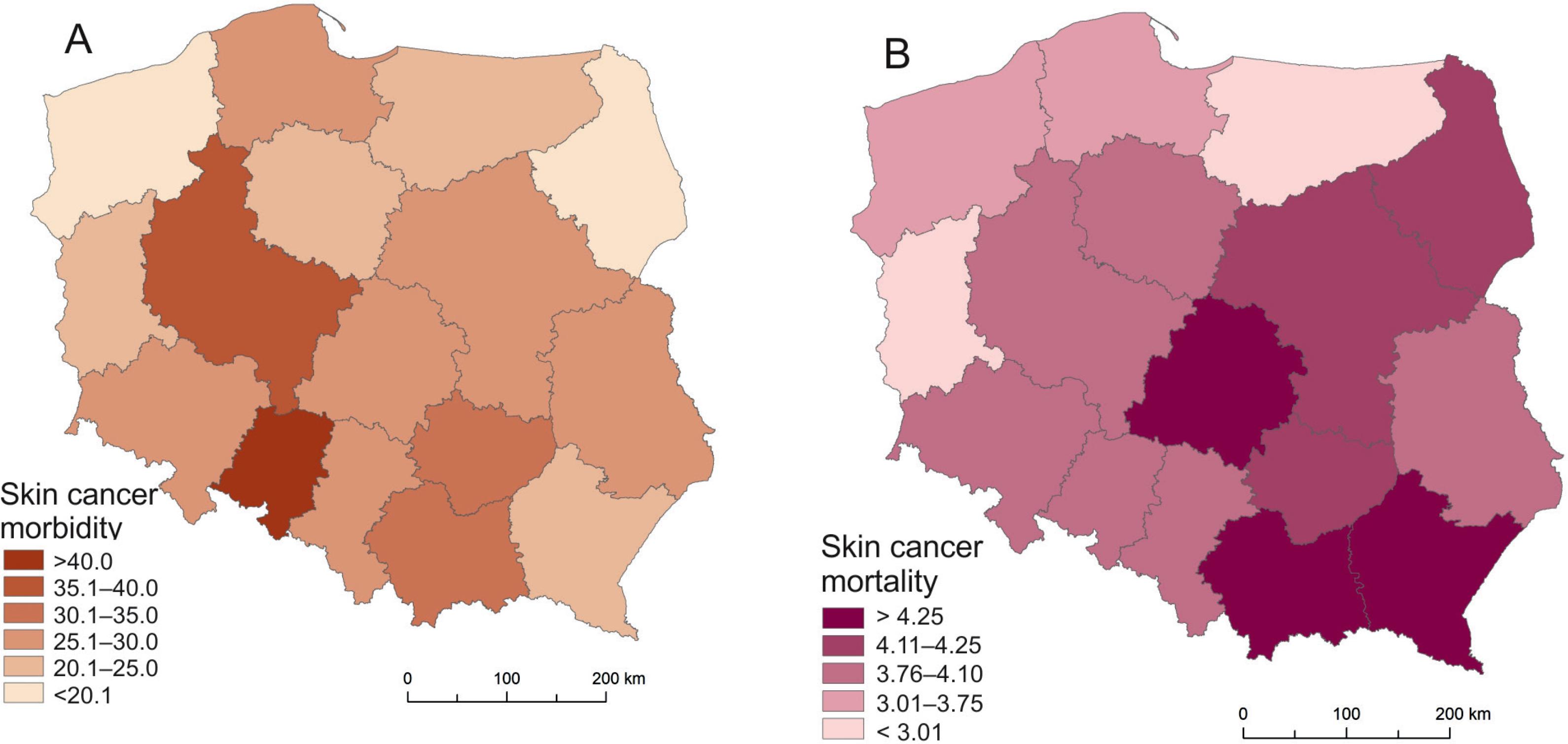 | Skin cancer morbidity / 100 000 | |||