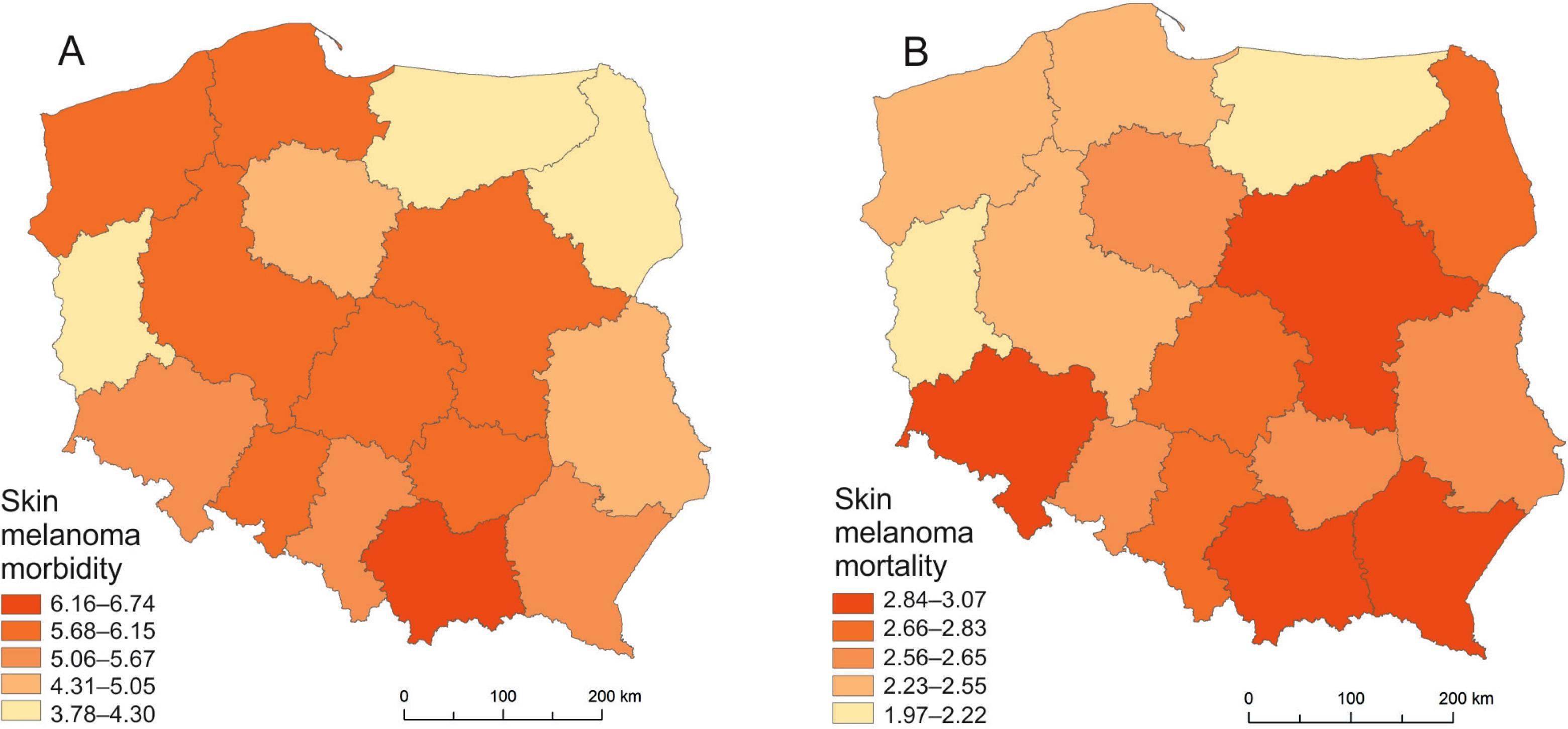 | Skin cancer mortality / 100 000 | |||