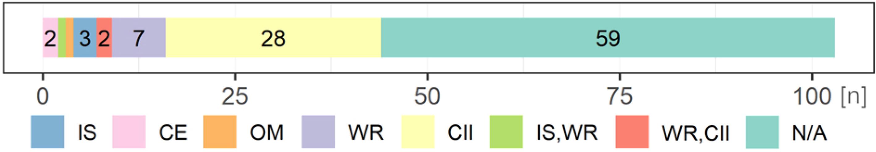 The manual check for eligibility resulted in 104 records for further in-depth analysis. For full transparency, supplementary material 2 provides a complete list of the records used in the study (available through the corresponding author).