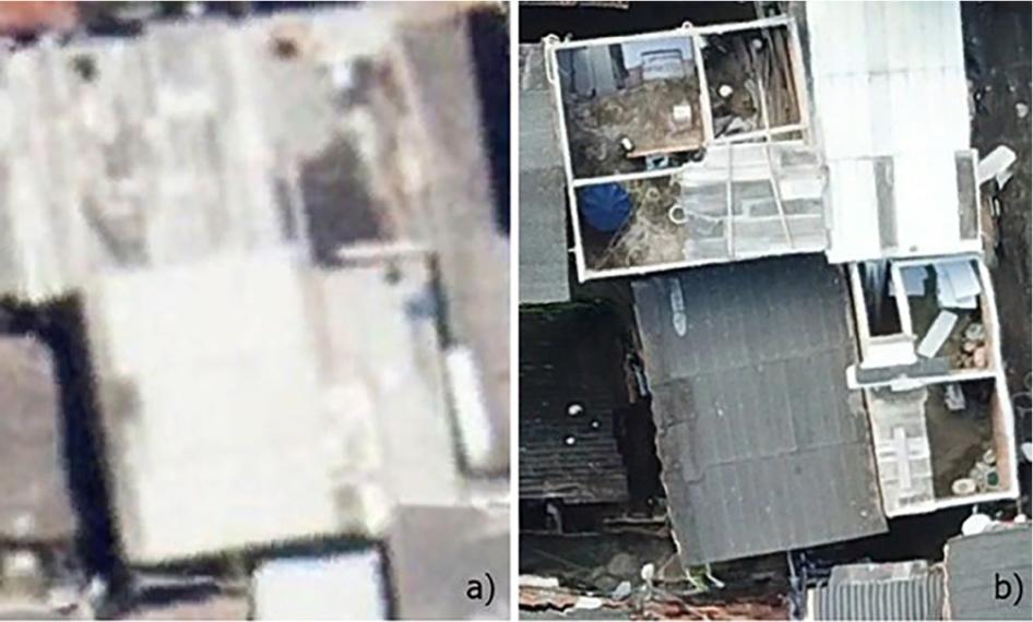 | Type of roof covering | It is possible to identify the type of roof coverage of the buildings, as per examples in Figures 8 and 9. |