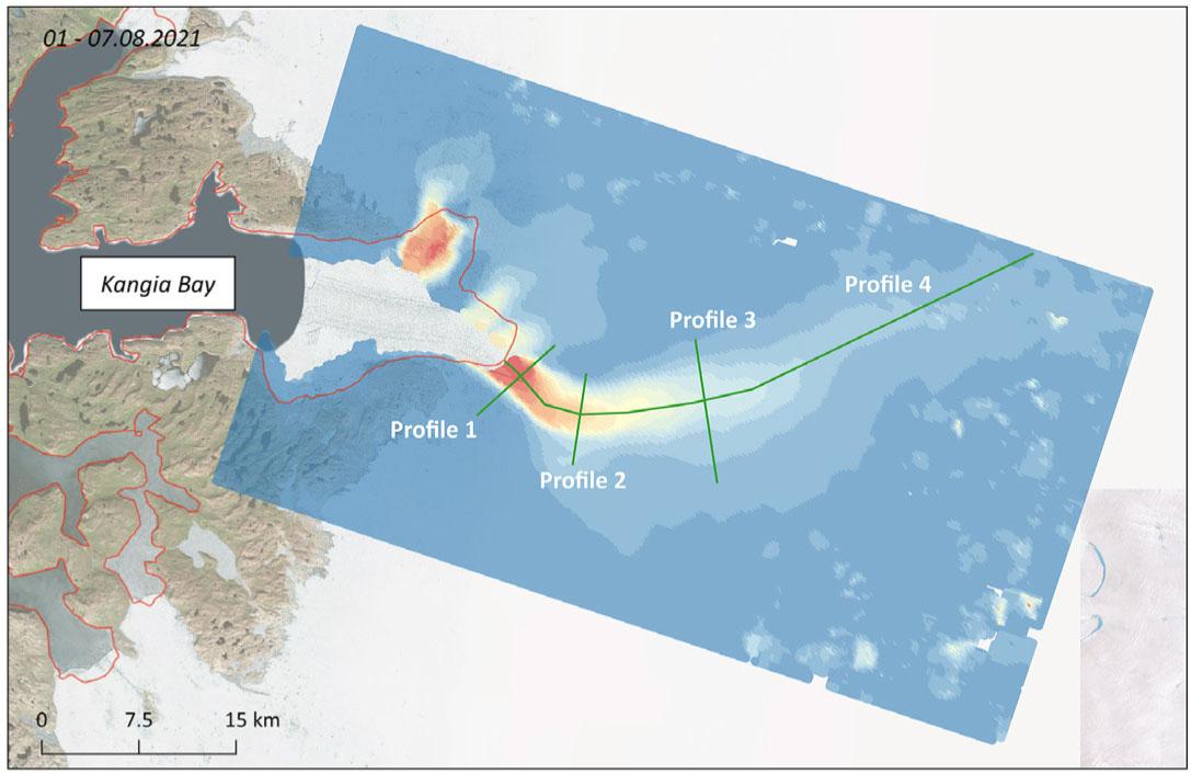 Velocities of the Jakobshavn Glacier in winter and summer 2021.