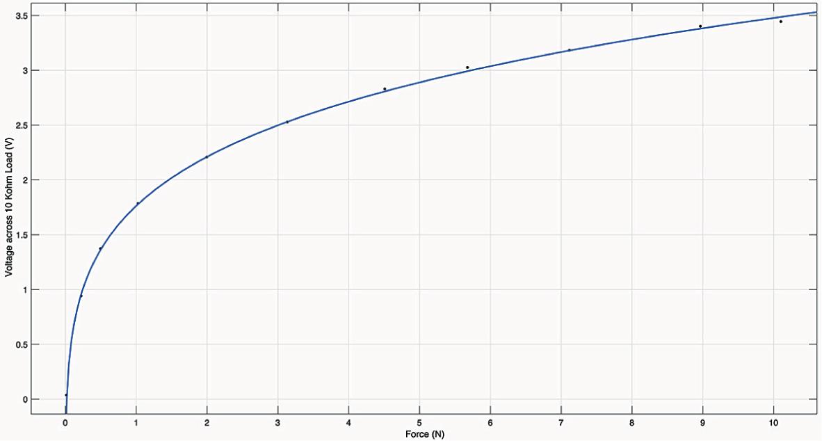 Force response curve for a FSR 400 with a 5 V supply and 10 K resistive load.5