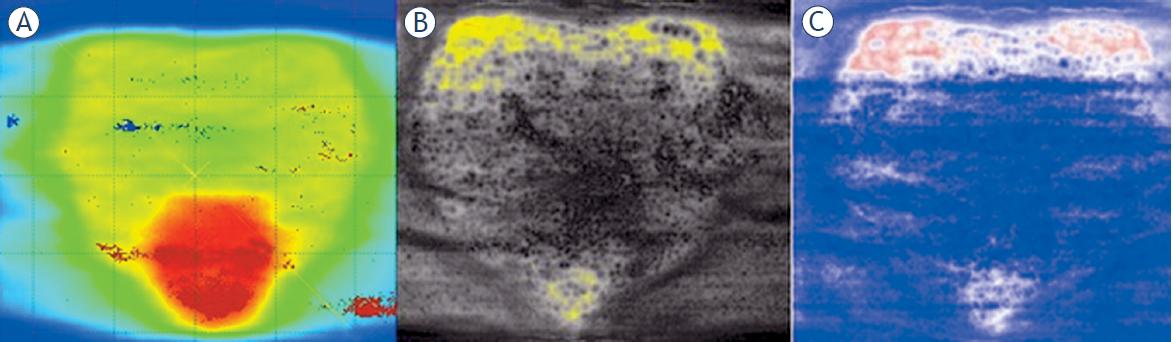 Evaluation of the simultaneous integrated boost (SIB) plan with PTW Mephysto (A), FilmQAPro (B) and radiohromic.com(C).