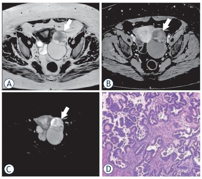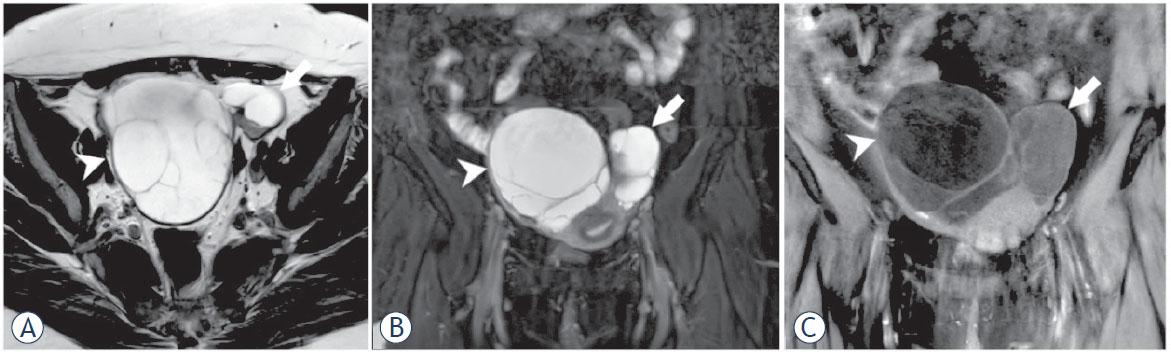 | Masses with high signal intensity in T2WI | 5/41 (12.2%) | 42/71 (59.1%) | 5/12 (41.6%) |