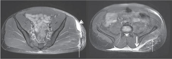 | Type 1 - Seroma | Homogenously hypointense seroma | Hyperintense collection | Laminar | No evidence of outer capsule formation |