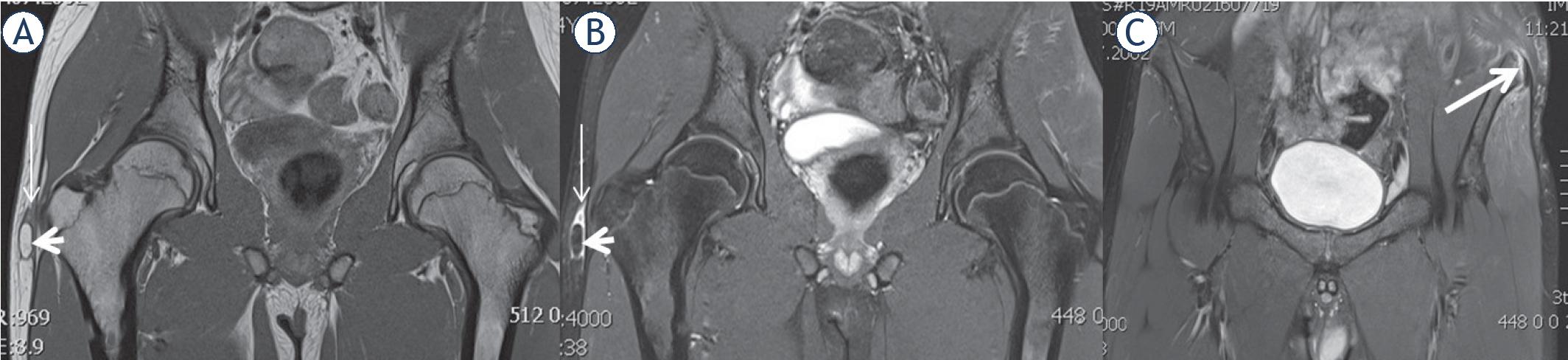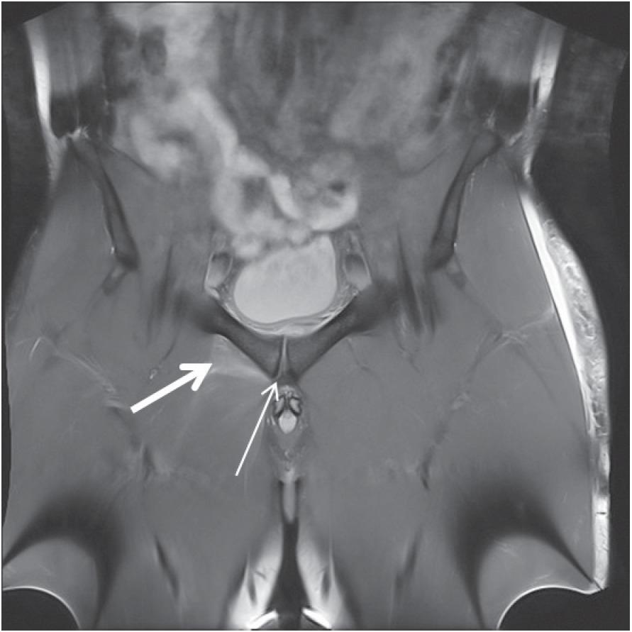 | Type 3 – Chronic organizing hematoma | Hypointense | Heterogeneous hypointense/ isointense | Oval | Thick capsule formation Capsular and internal enhacement on postcontrast sequences |