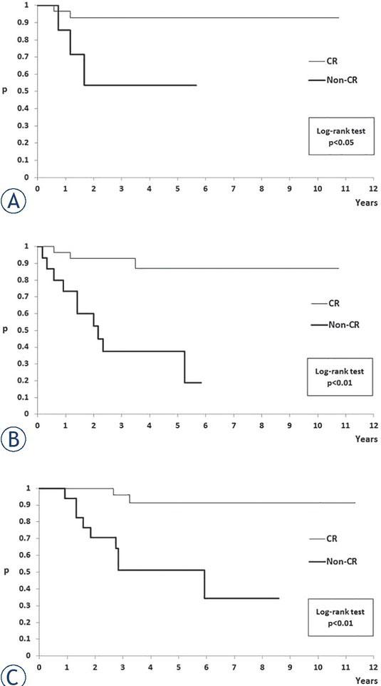 | CR | non-CR | rank Wilcoxon sum test | |