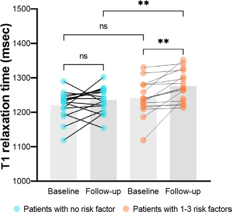 Differences in CMR parameters at follow-up 1 between patients with and without baseline risk factors