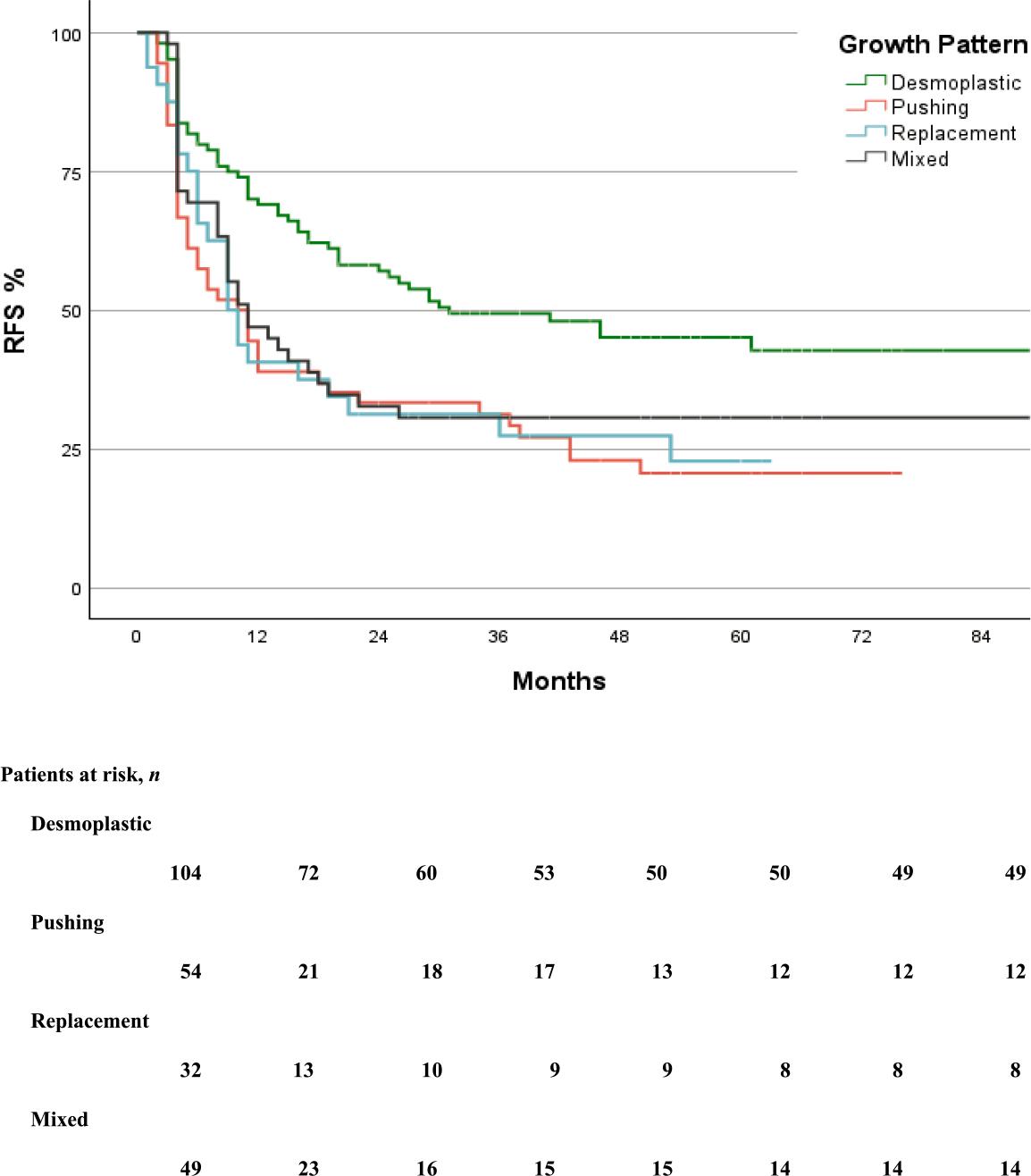 | Variable | All types 239 | Desmoplastic 104 | Pushing 54 | Replacement 32 | Mixed 49 | P-value |