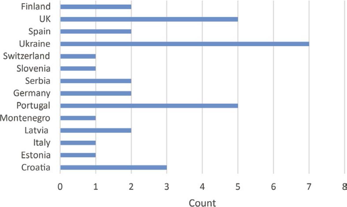 Number of answers to the questionnaire among countries.