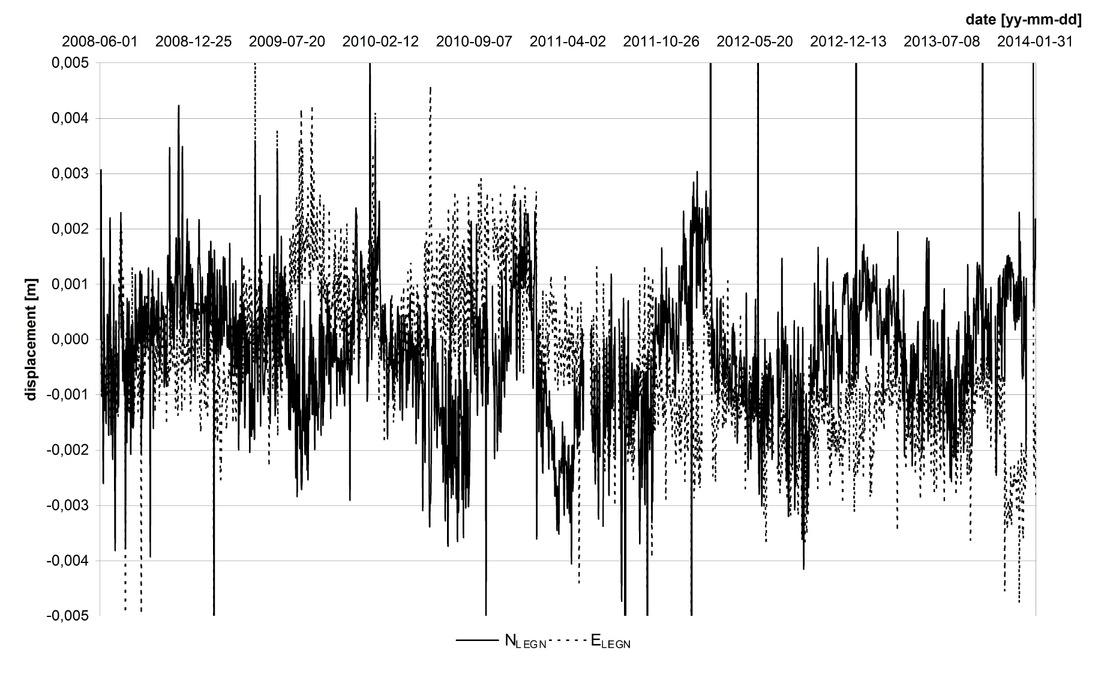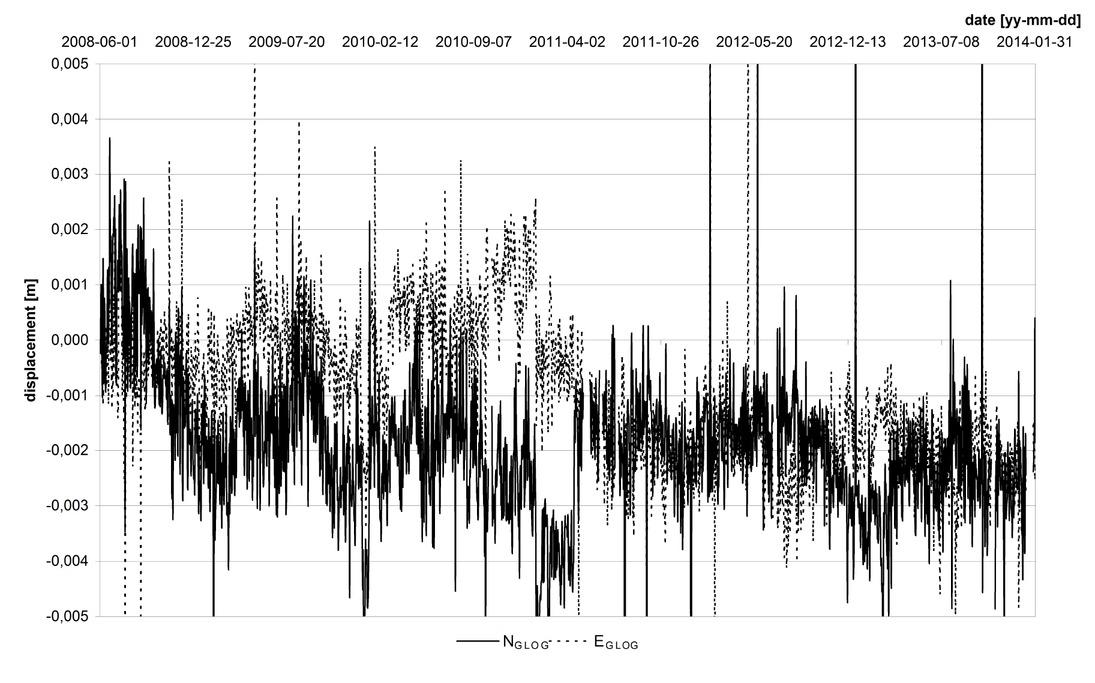 Evaluated parameters of Gaussian peak and the values are expressed in mm/m for positive and negative peaks