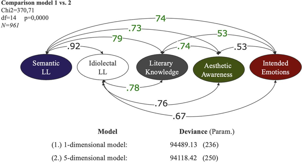 All five sub-dimensions have been empirically proven to be clearly distinguishable (Fig. 1). A significant empirical separability had also emerged between literary literacy and reading literacy (Fig. 2).