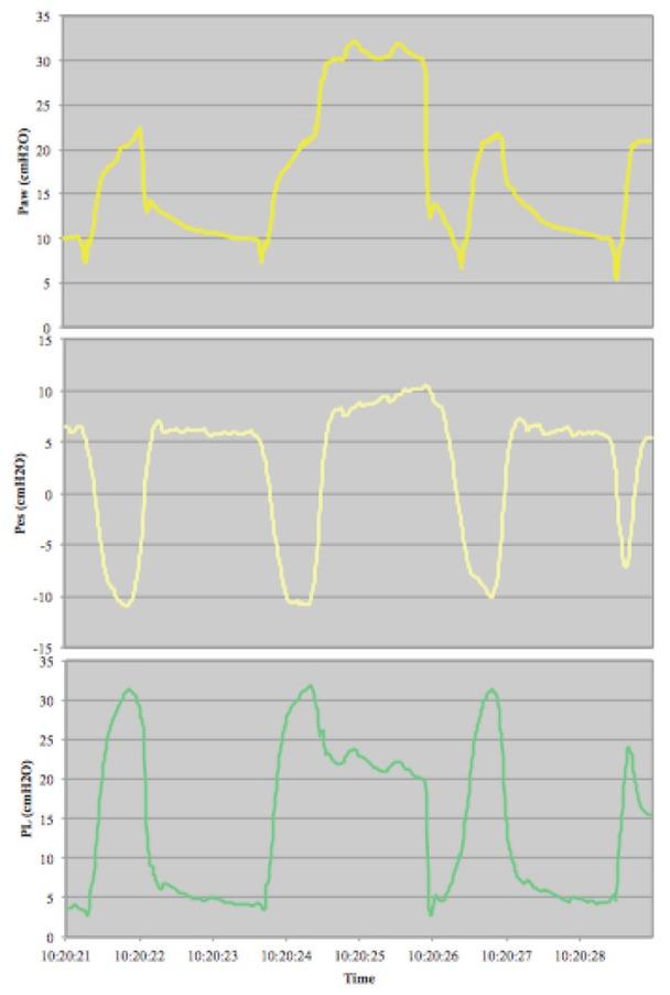* Paw: airway pressure (cmH2O), Pes: esophageal pressure (cmH2O), PL: transpulmonary pressure (cmH2O)