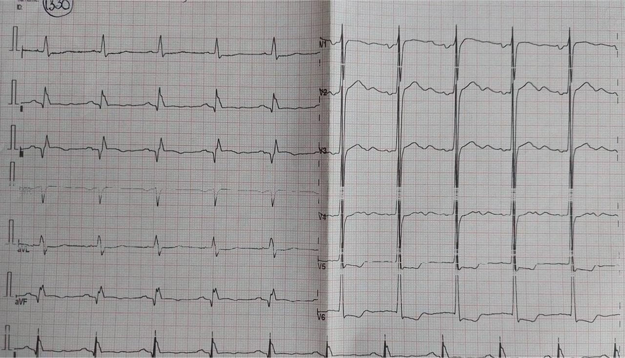 We report the case of a 55-year-old male (former smoker) who was admitted to the emergency unit for the occurrence of fast-paced palpitations, accompanied by increased fatigue and multiple lipothymic episodes, with sudden onset, ∼6 hours before admission. The initial electrocardiogram identified ventricular tachycardia with pulse, which, after intravenous amiodarone administration, returned to sinus rhythm.