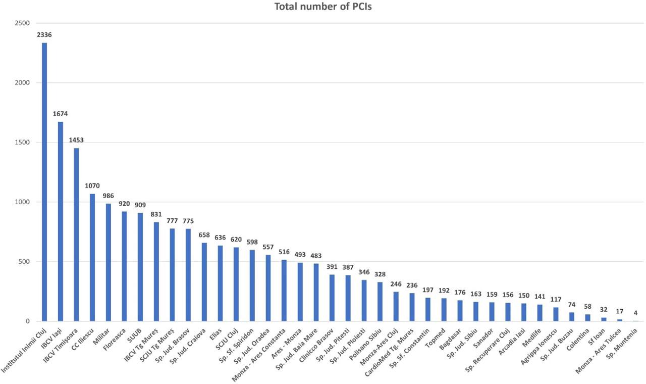 Total number of PCIs in 2021 in all interventional centers from Romania (PCI: percutaneous coronary intervention)