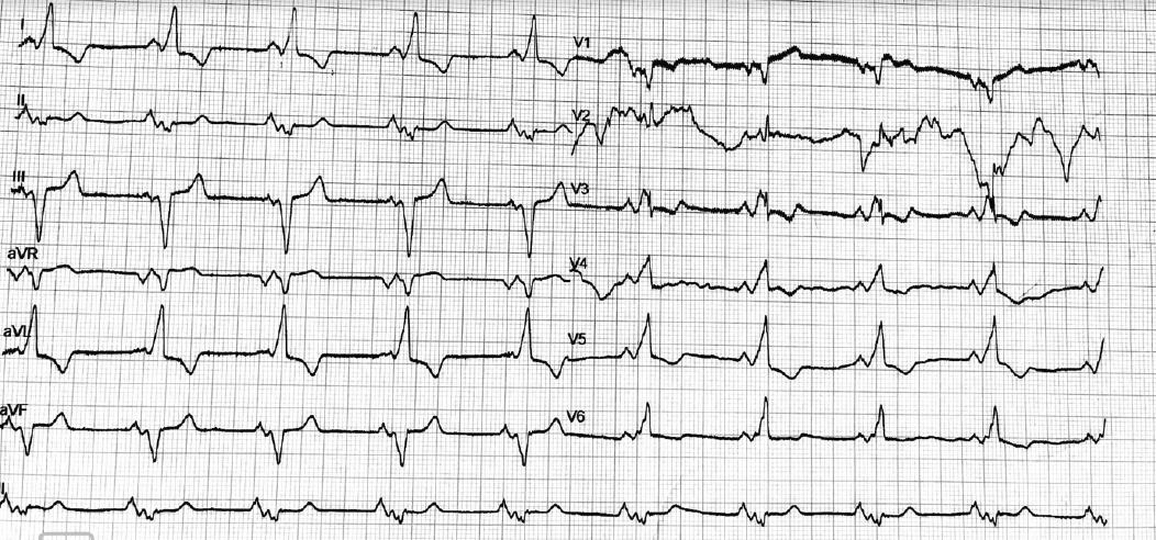 ECG findings showing a short PR interval and the positive delta wave in the lateral leads.