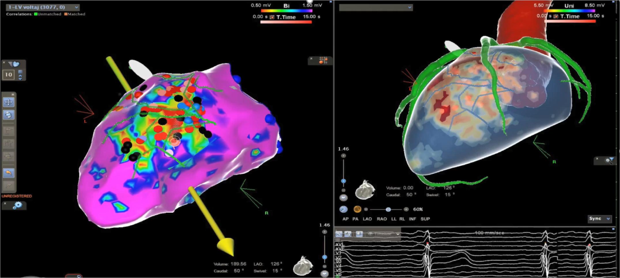Late gadolinium enhancement cardiac magnetic resonance (LGE-CMR) and multidetector cardiac computed tomography (MDCT) have emerged as valuable imaging tools for characterizing arrhythmogenic substrates in ventricular tachycardia. Integration of pixel signal intensity maps (PSI) from LGE-CMR and wall thickness maps from MDCT into the navigation system has been increasingly utilized by many centers [6].