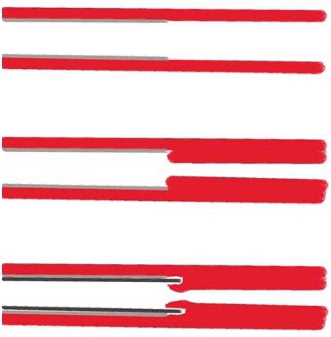 Top diagram shows the sheath within the RA. Over the course of the procedure, especially with catheter exchanges, RA spasm ensues and with the sheath slipping in and out of the access site, the razor tip cuts into the vessel wall with tissue prolapsing into the sheath lumen as shown in the middle diagram. The bottom diagram illustrates the next catheter being pushed through the sheath, the “sheath-supported” catheter tip catches the prolapsed tissue, extends the dissection causing significant vessel wall disruption, in some cases perforation or detached tissue carried off by the catheter tip, which could be injected out as tissue embolus systemically or into the coronary artery.