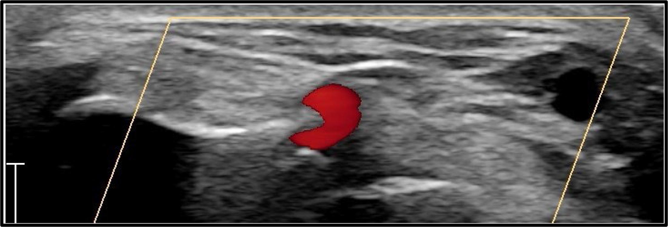 Ultrasound makes it easy to identify the scaphoid floor, extensor pollicis longus, and extensor pollicis brevis, accurately locating the distal radial artery and the optimal puncture site in a non-angulated segment, thus avoiding multiple punctures (Figure 2). Additionally, ultrasound allows the operator to measure the arterial diameter, ensuring appropriate sizing for the planned or potentially needed intervention.