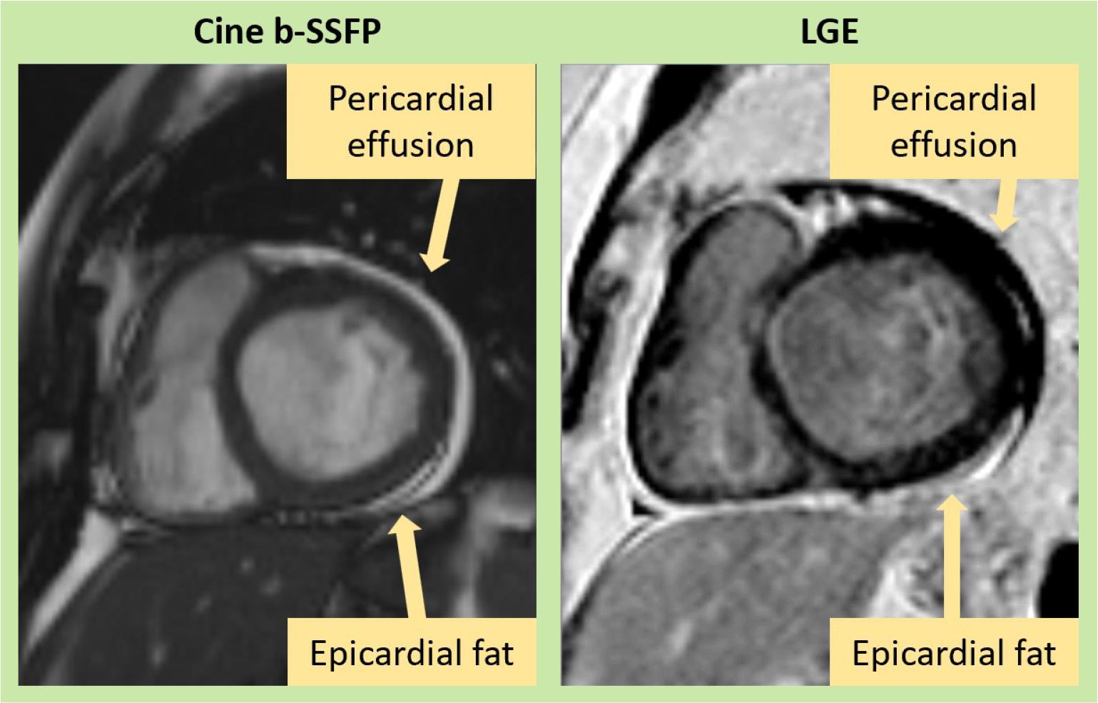 | Supportive criteria | Pericardial effusion in cine images or | Pericardial inflammation |