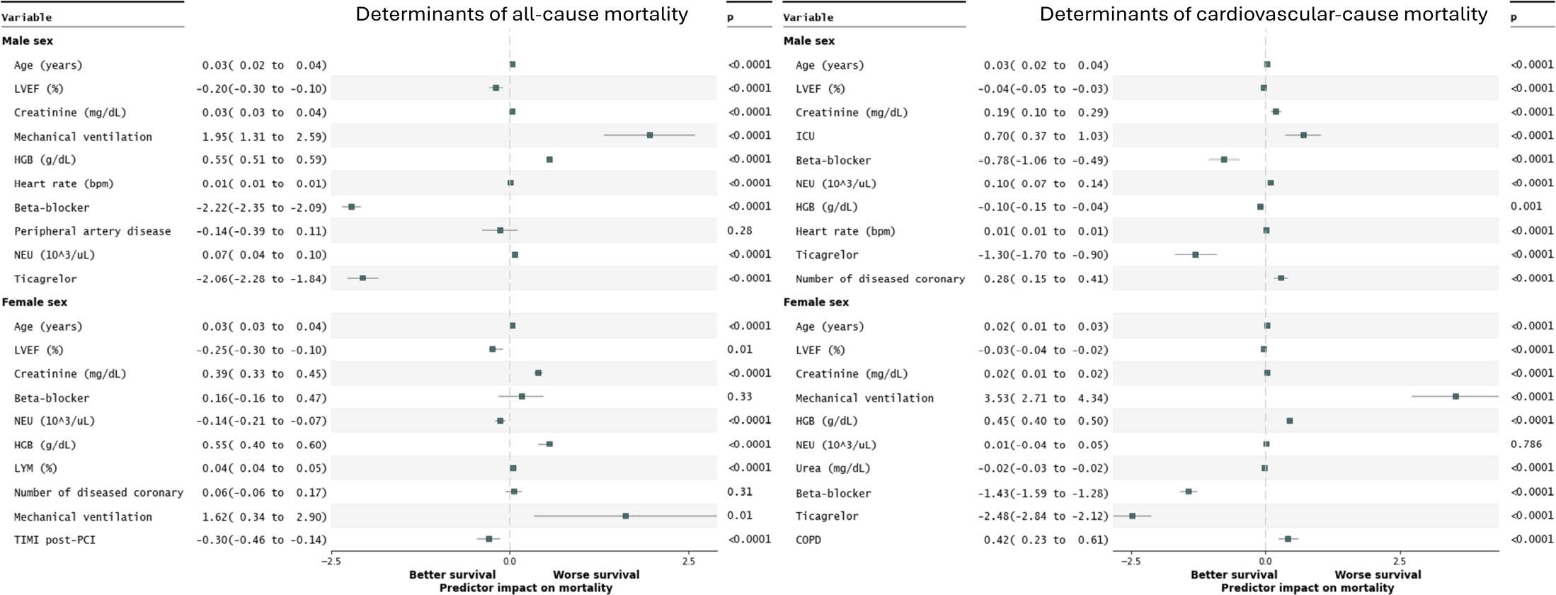 | Time from hospitalization to PCI (hours) | 24.93 (3.1 - 56.7) | 24.52 (2.51 - 51.14) | 25.08 (3.27 - 62.27) | 0,01517 |